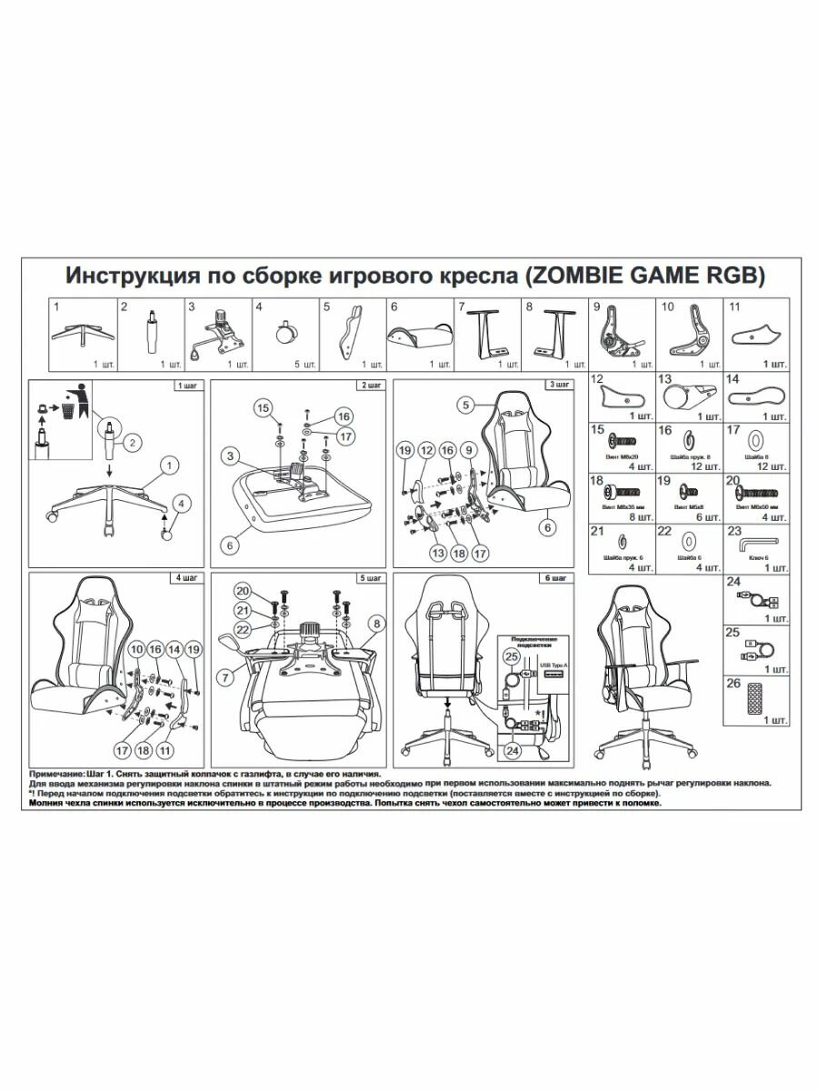 СохранитьКресло компьютерное игровое Zombie GAME с RGB подсветкой, стул геймерский на колесиках, с подлокотниками, высокой спинкой, подушками, экокожа / ткань интересное: