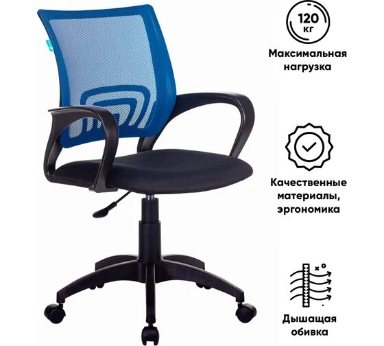 Компьютерное кресло Бюрократ CH-695NLT синего цвета TW-01, офисный стул с подлокотниками