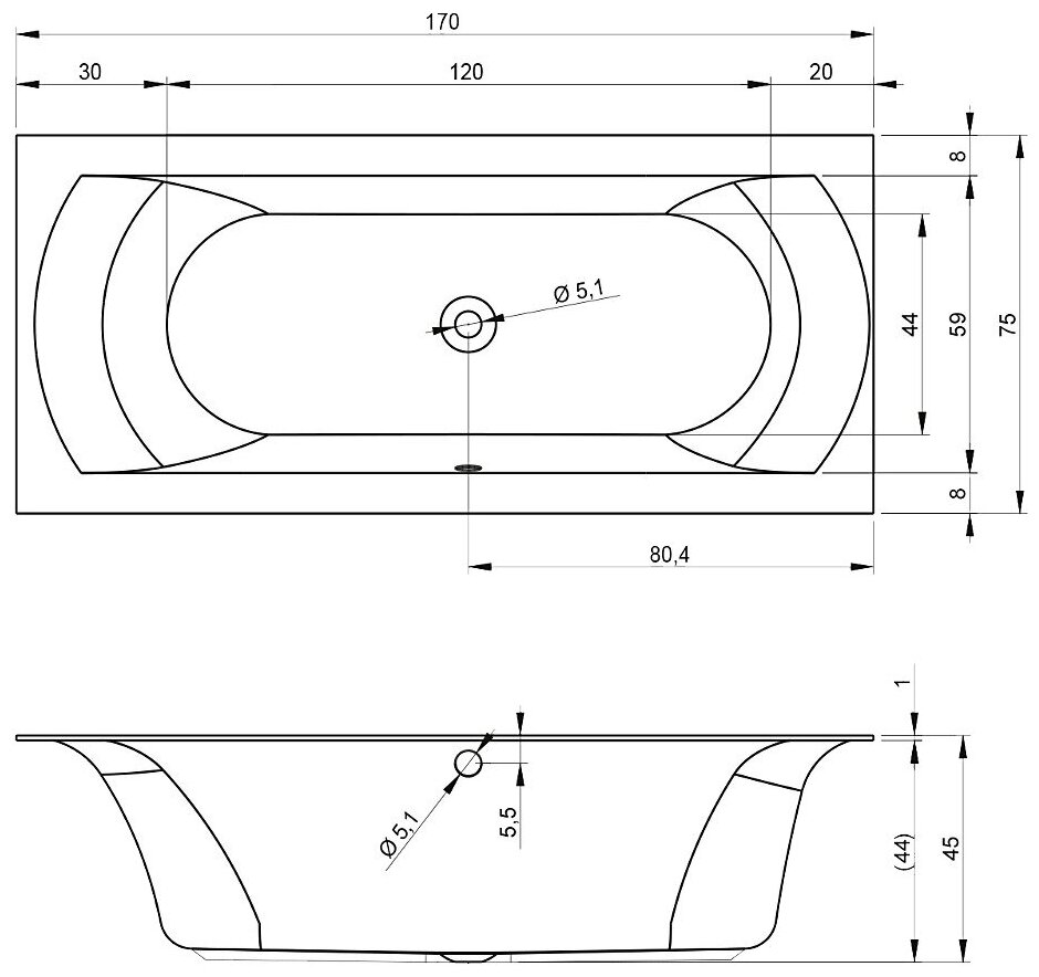 Акриловая ванна RIHO LINARES VELVET 170x75 см , B141001105 (BT4410500000000)