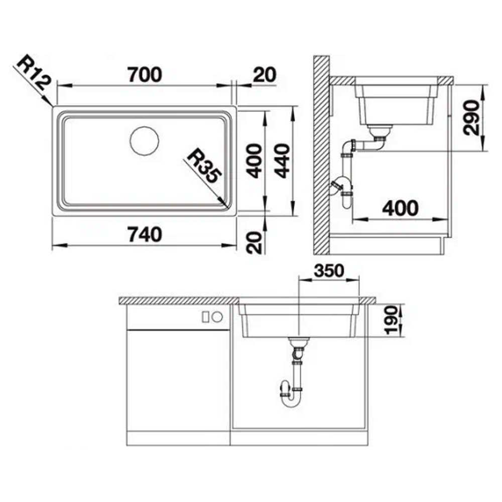 Кухонная мойка Blanco ETAGON 700-U нержавеющая сталь