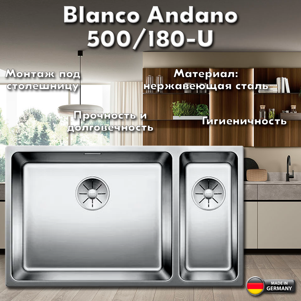 Купить Кухонная мойка Blanco ANDANO 500/180-U, нержавеющая сталь, зеркальная полировка, прямоугольная