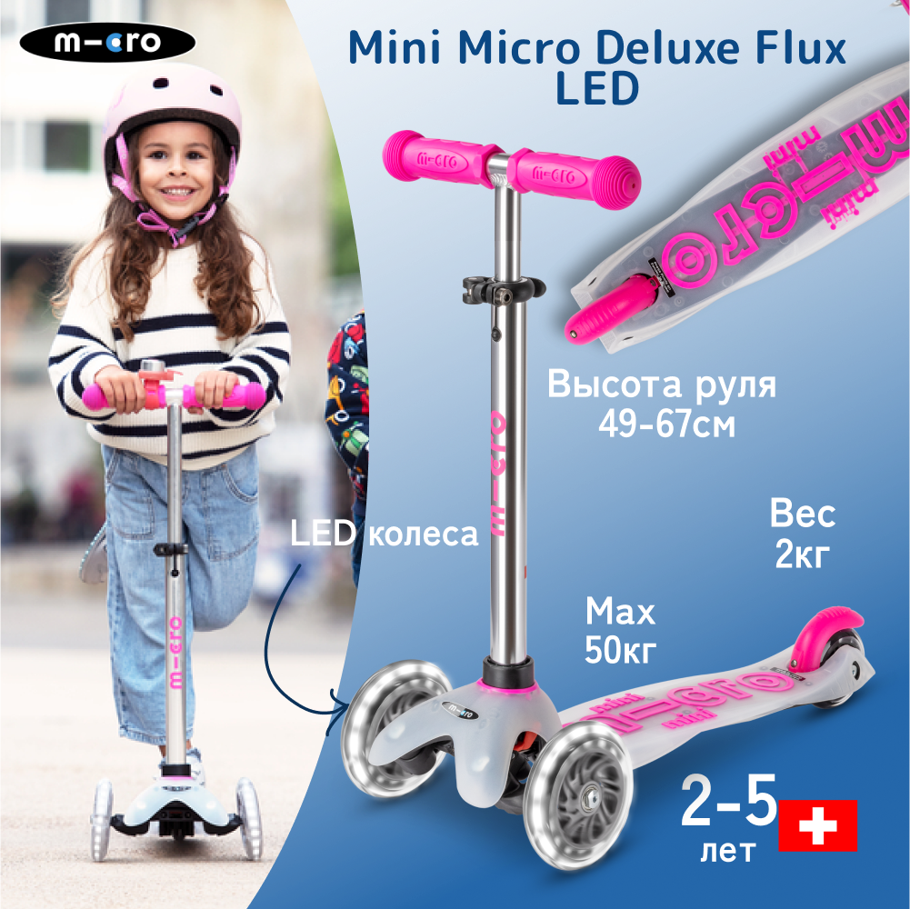Самокат Mini Micro Deluxe LED (Розовый (MMD075) светящиеся колеса)