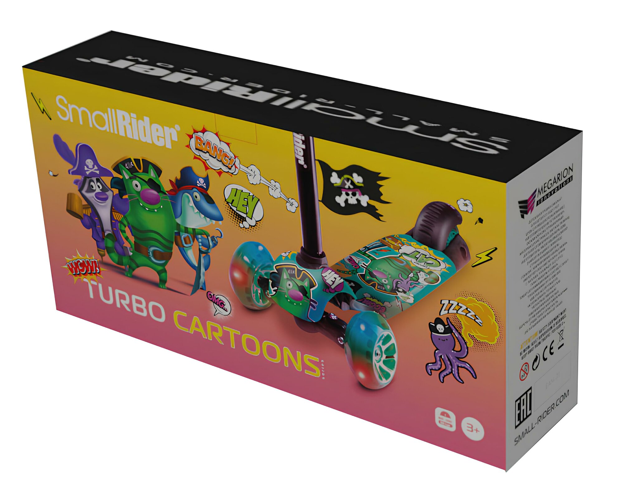 Самокат SMALL RIDER Turbo 2 Cartoons детский 3-кол. зеленый/мультиколор (1643762)