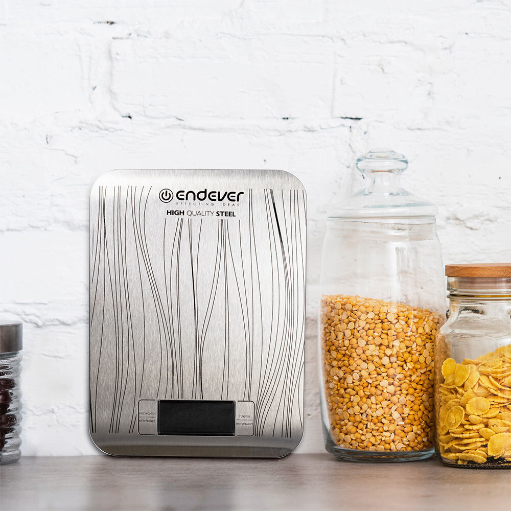 Купить Весы кухонные Endever Chief-538 , электронные, 5 кг, точность 1 г, серебристые, тарокомпенсация, батарейки в комплекте