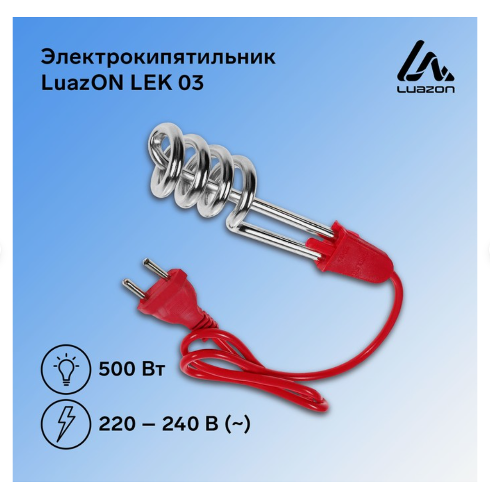 | Подробная комплектация | Электрокипятильник LuazON LEK 01 |