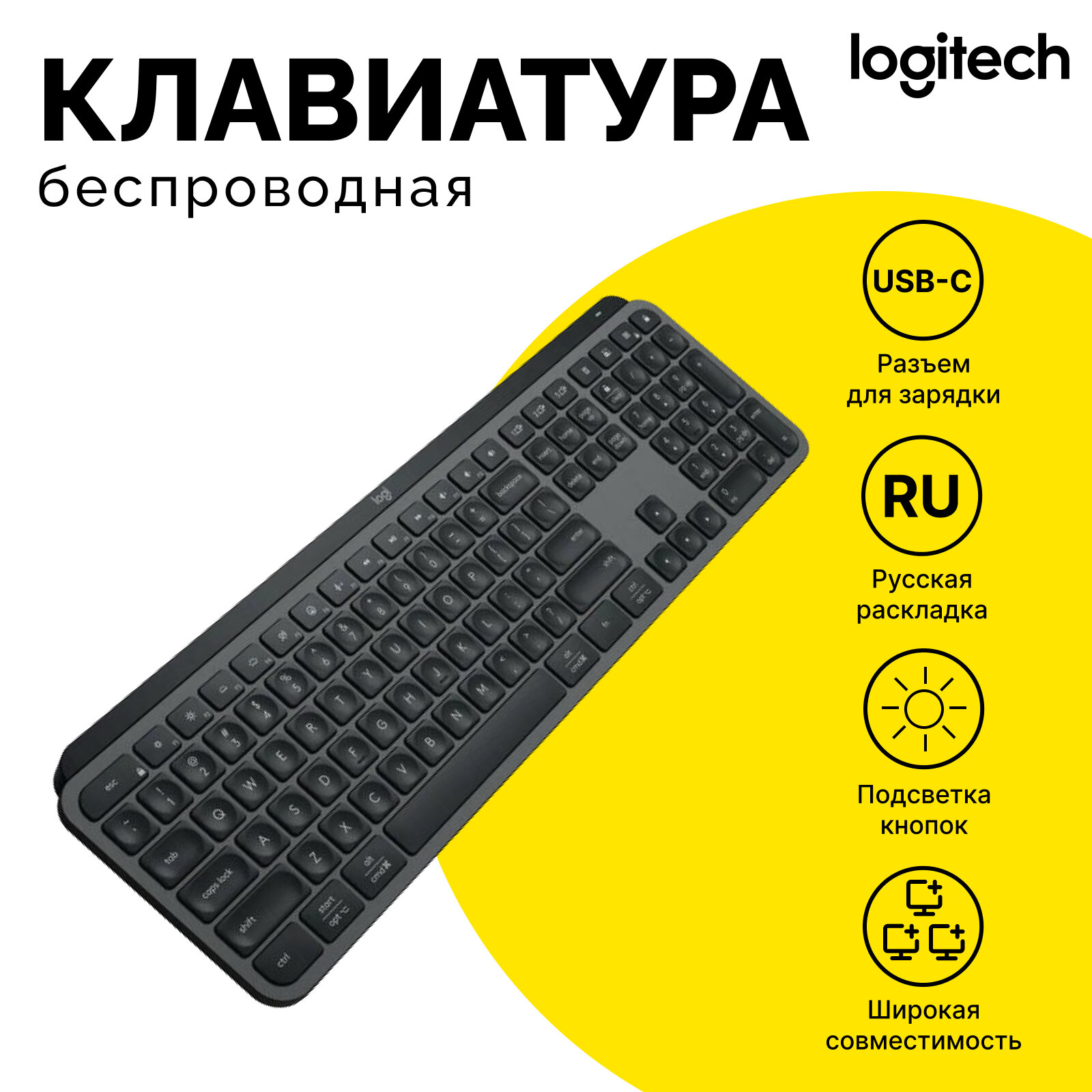 Беспроводная клавиатура Logitech MX Keys черный , Английская/Русская раскладка