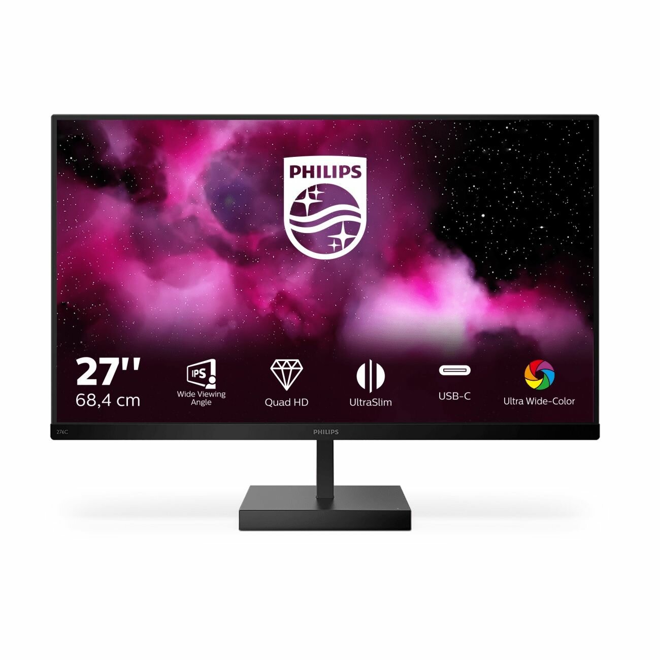 Монитор 27" PHILIPS 276C8/00 Black (IPS, 2560x1440, 75Hz, 4 ms, 178°/178°, 350 cd/m, Mega DCR, +HDMI 1.4, +HDMI 2.0, +USB-Type C 3.2)