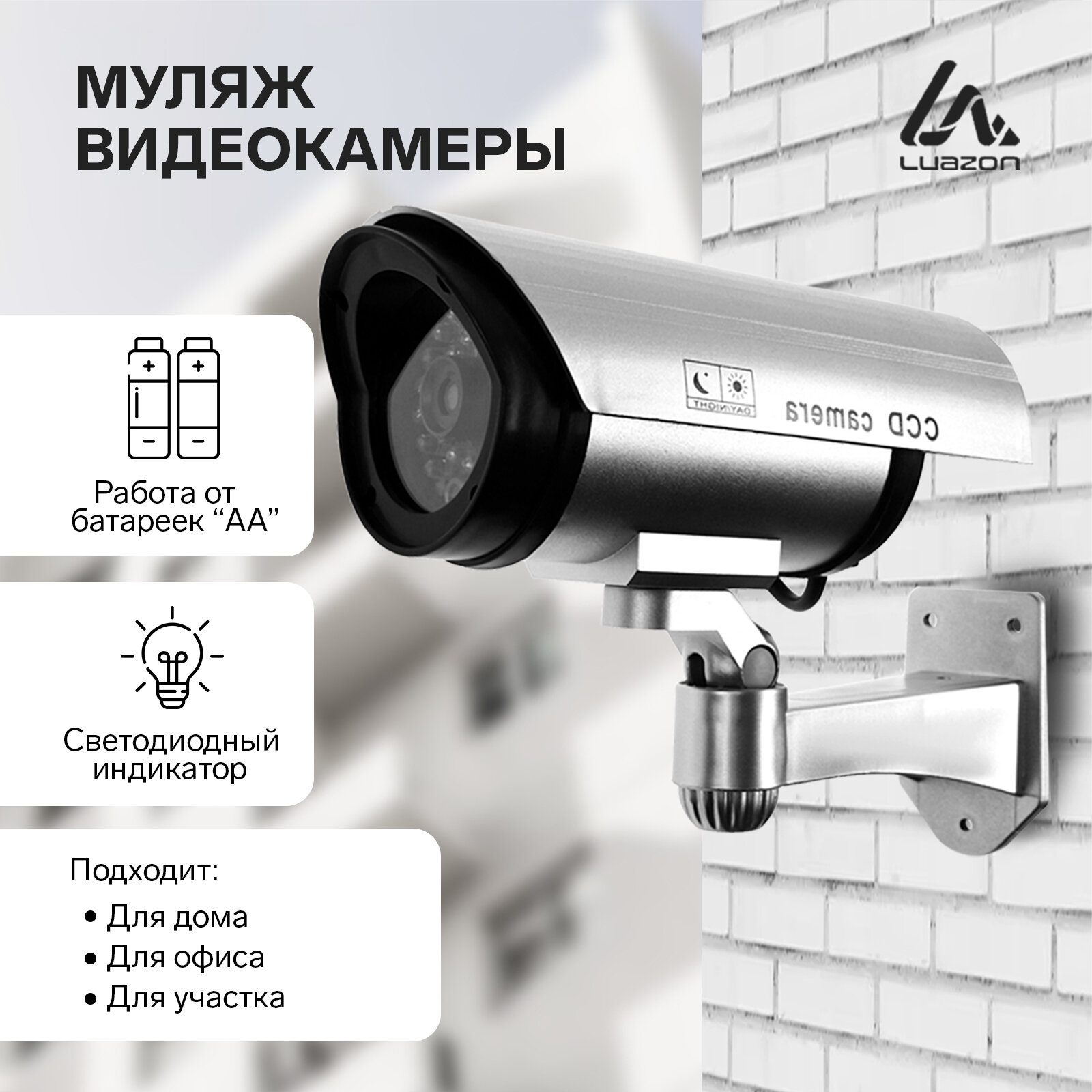 Luazon Home Муляж уличной видеокамеры LuazON VM-2, с индикатором, 2хАА (не в компл.), серый