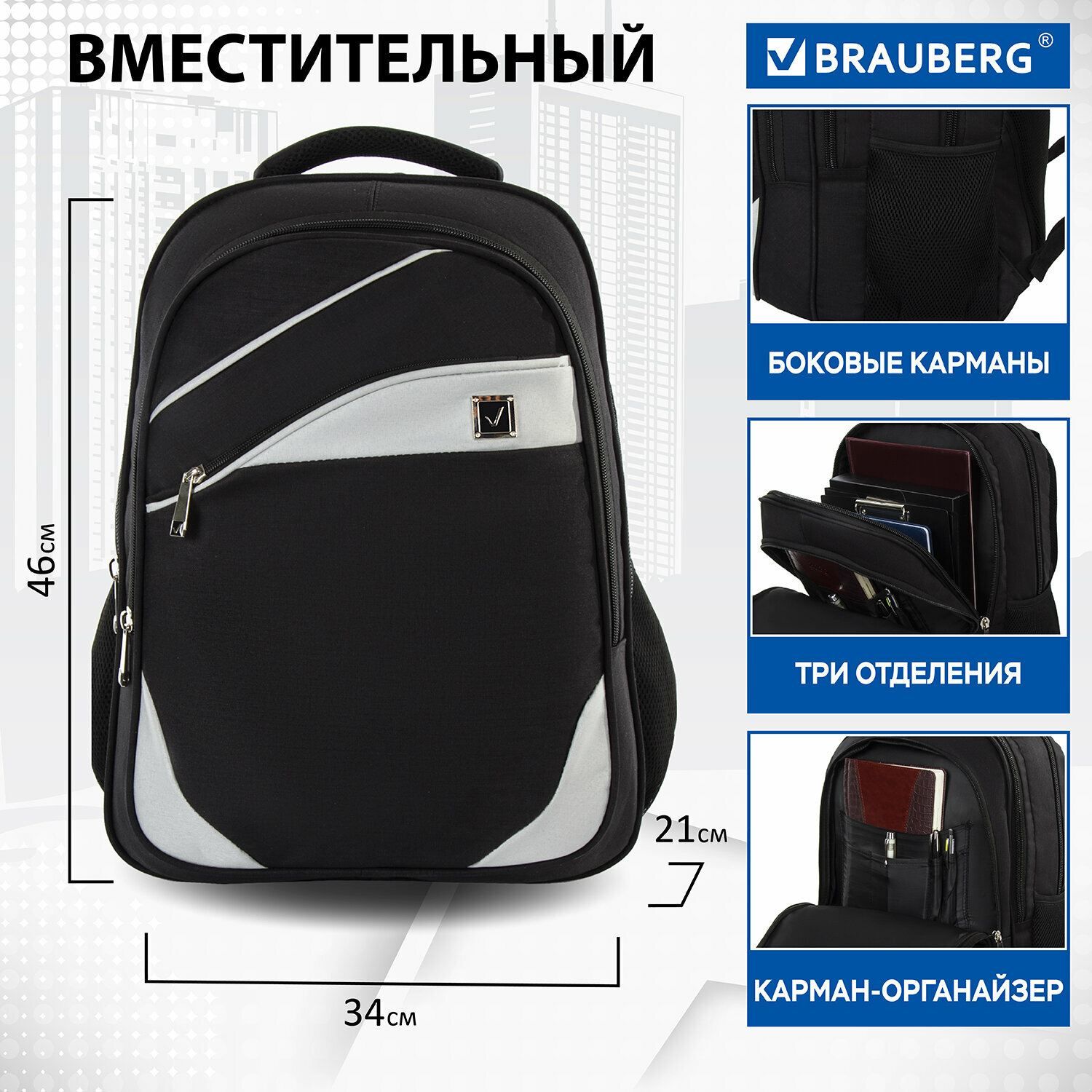 Рюкзак для школы и офиса BRAUBERG SP-1, размер 46?34?21 см, ткань, серо-белый