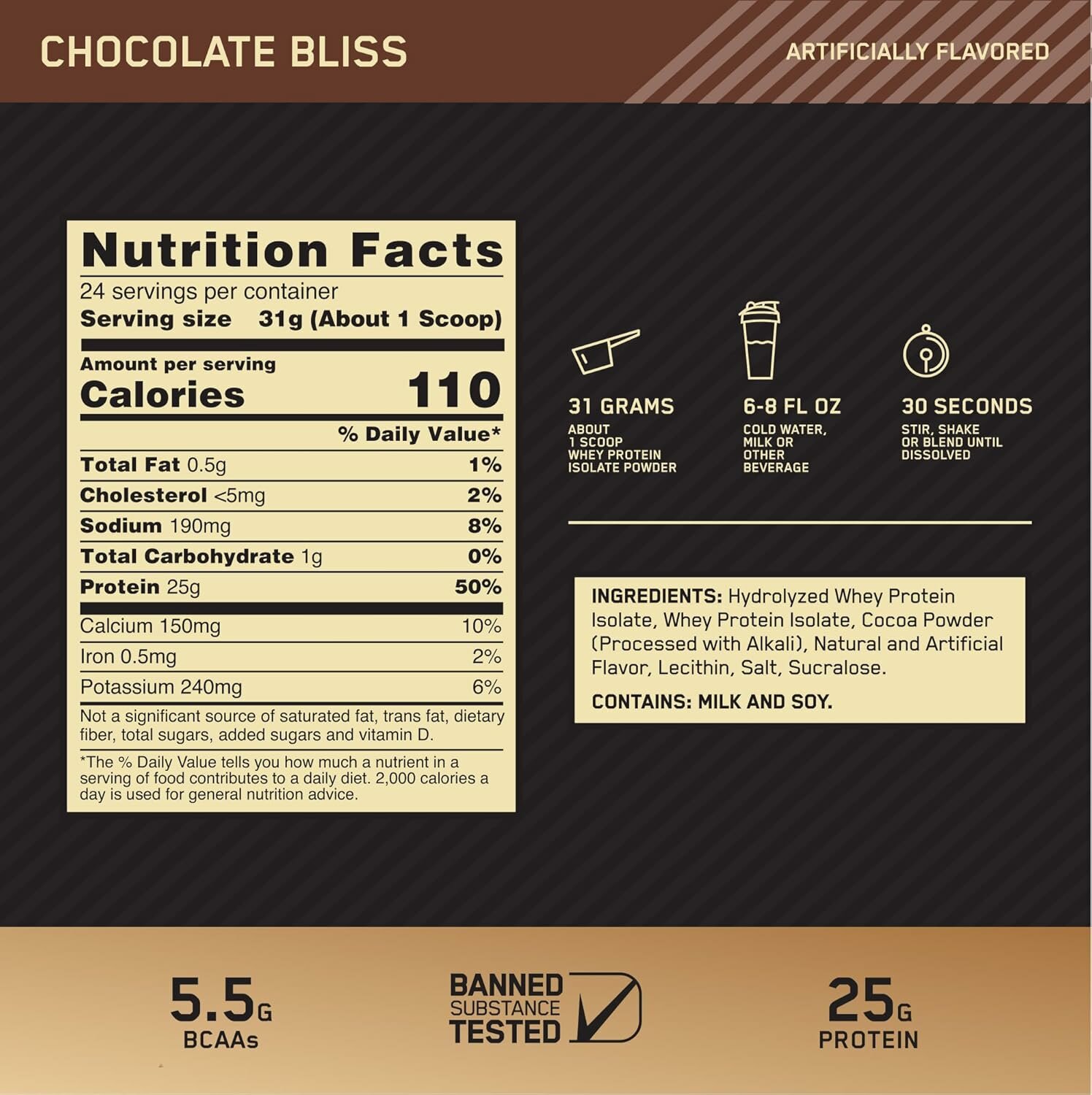 Optimum Nutrition, Gold Standard 100% Isolate, Chocolate Bliss, 1.64 lb (744 g)