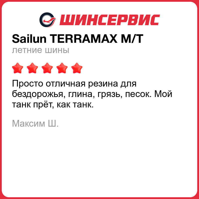 Ниже Вы можете прочитать отзывы на Автошина Sailun Terramax MT 285/70R17 121/118Q, ознакомится с подробными характеристиками, посмотреть интересные обзоры и фотографии на Автошина Sailun Terramax MT 285/70R17 121/118Q.