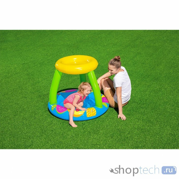 Купить Детский надувной бассейн 94х89х79см BESTWAY "Фрукты" с навесом и надувным дном, 26л, от 2 лет, 52331