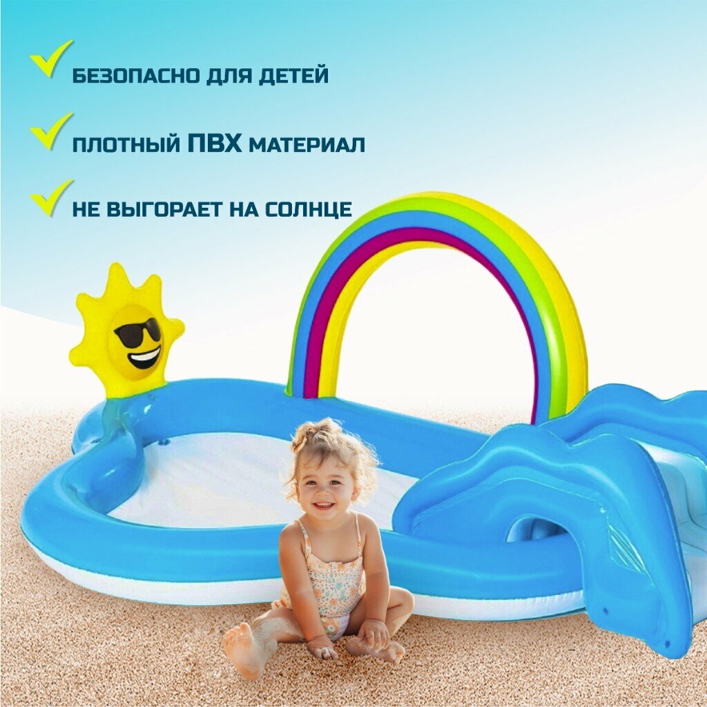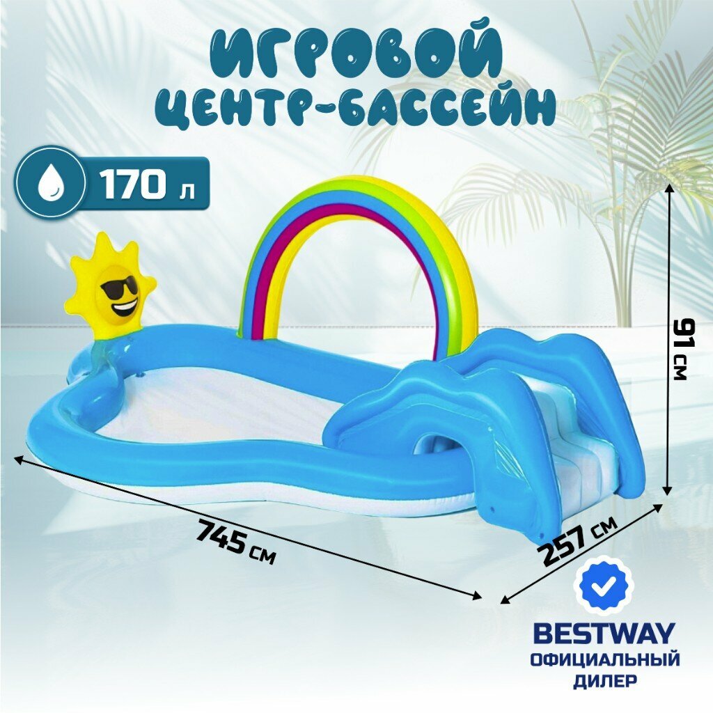 СохранитьИгровой центр-бассейн Bestway, 257х745х91 см, Радуга и брызги, 53092, 170 л, с разбрызгивателем интересное: