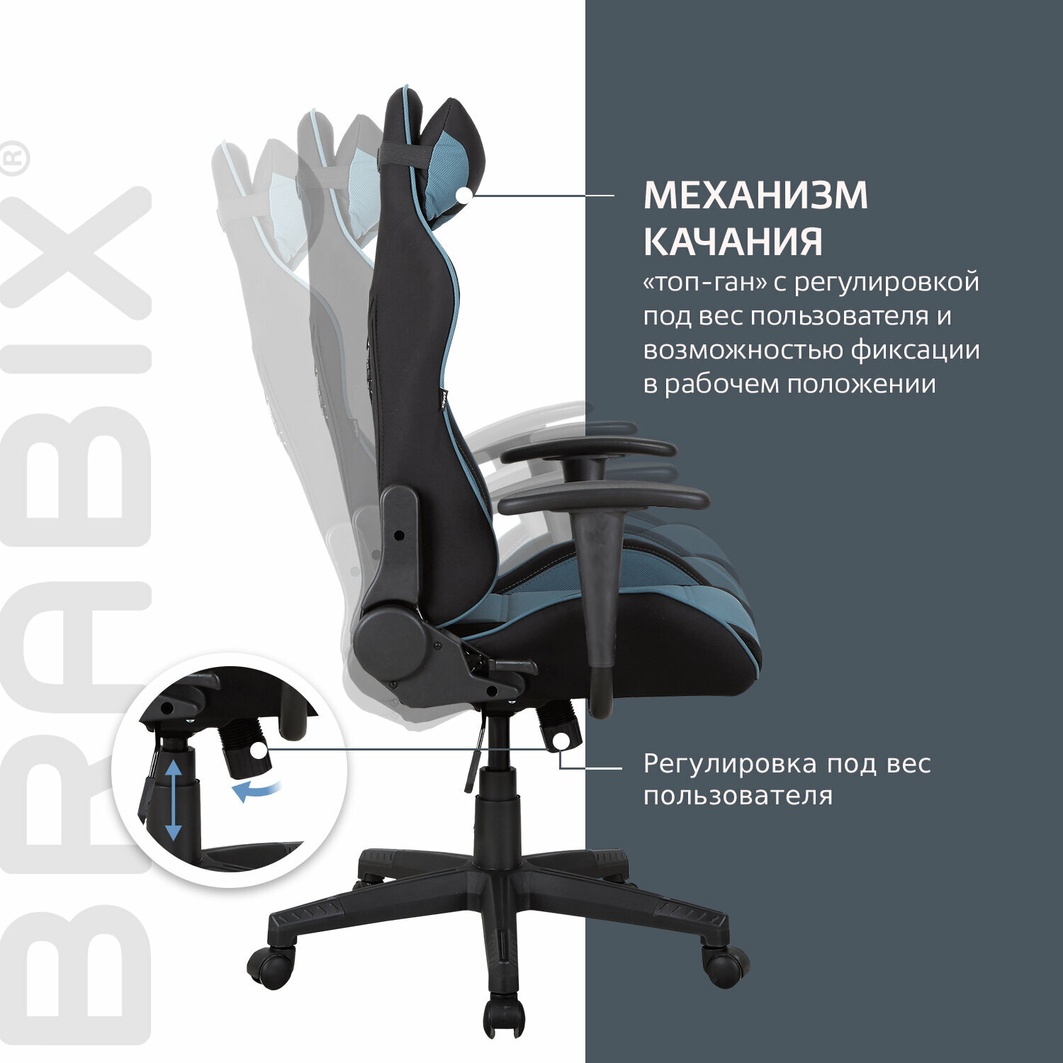 Игровое кресло для геймеров BRABIX GT Racer GM-100, две подушки, ткань, черное/голубое