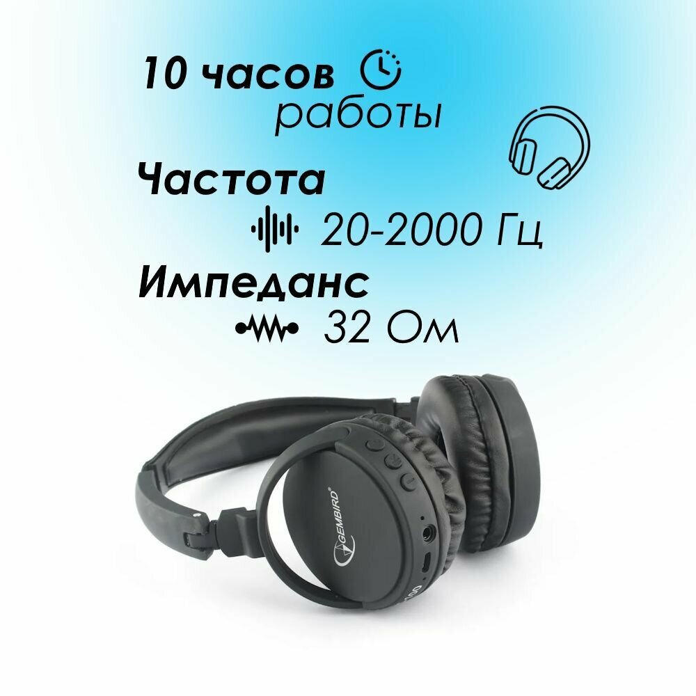 Bluetooth наушники с микрофоном Gembird BHS100, беспроводная полноразмерная гарнитура, черная