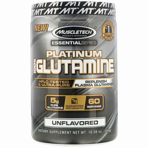 Купить MuscleTech, Platinum, 100% глутамин, без вкусовых добавок, 300 г (10,58 унции)