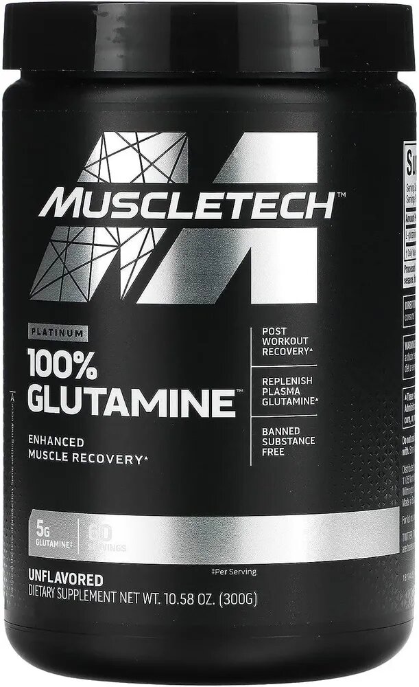 L-глютамин Muscletech Platinum 100% Micronized Glutamine, 300г (Без вкуса) / Аминокислота, 60 порций / Спортивное питание для спортсменов, мужчин и женщин