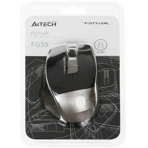 Мышь беспроводная A4Tech Fstyler FG35, 2000dpi, Wireless/USB, Серый/Черный, FG35 GREY