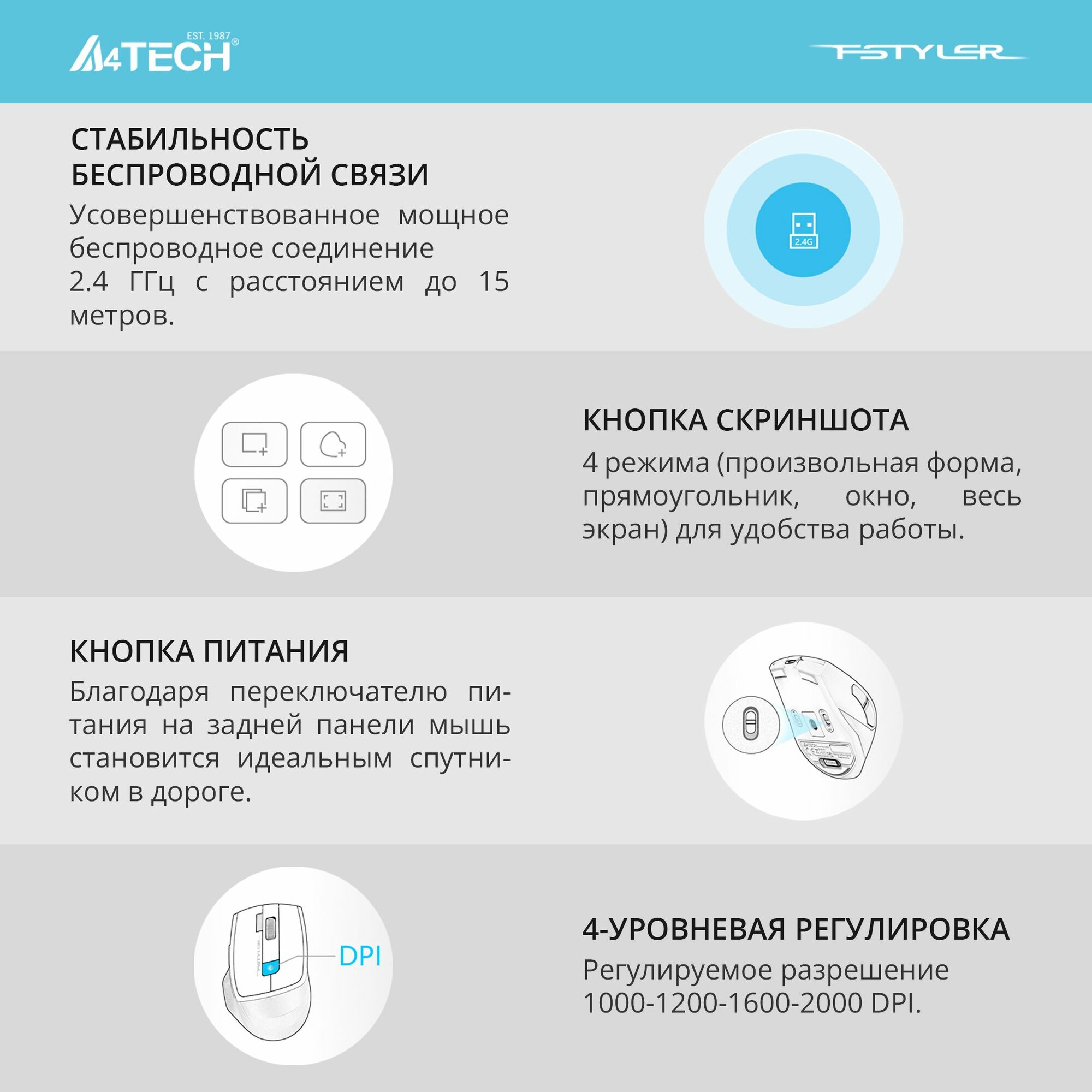 Мышь A4Tech Fstyler FG45CS Air, голубой/белый (fg45cs air usb (lcy blue))