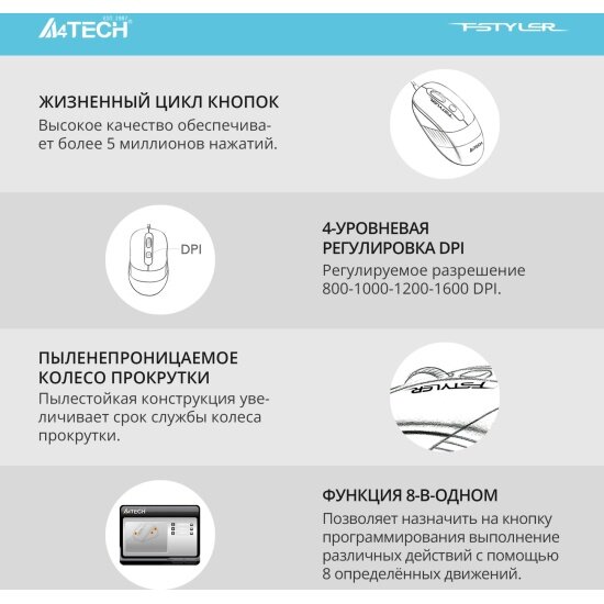 Проводная оптическая мышь A4Tech Fstyler FM10, 1600dpi, 4 кнопки