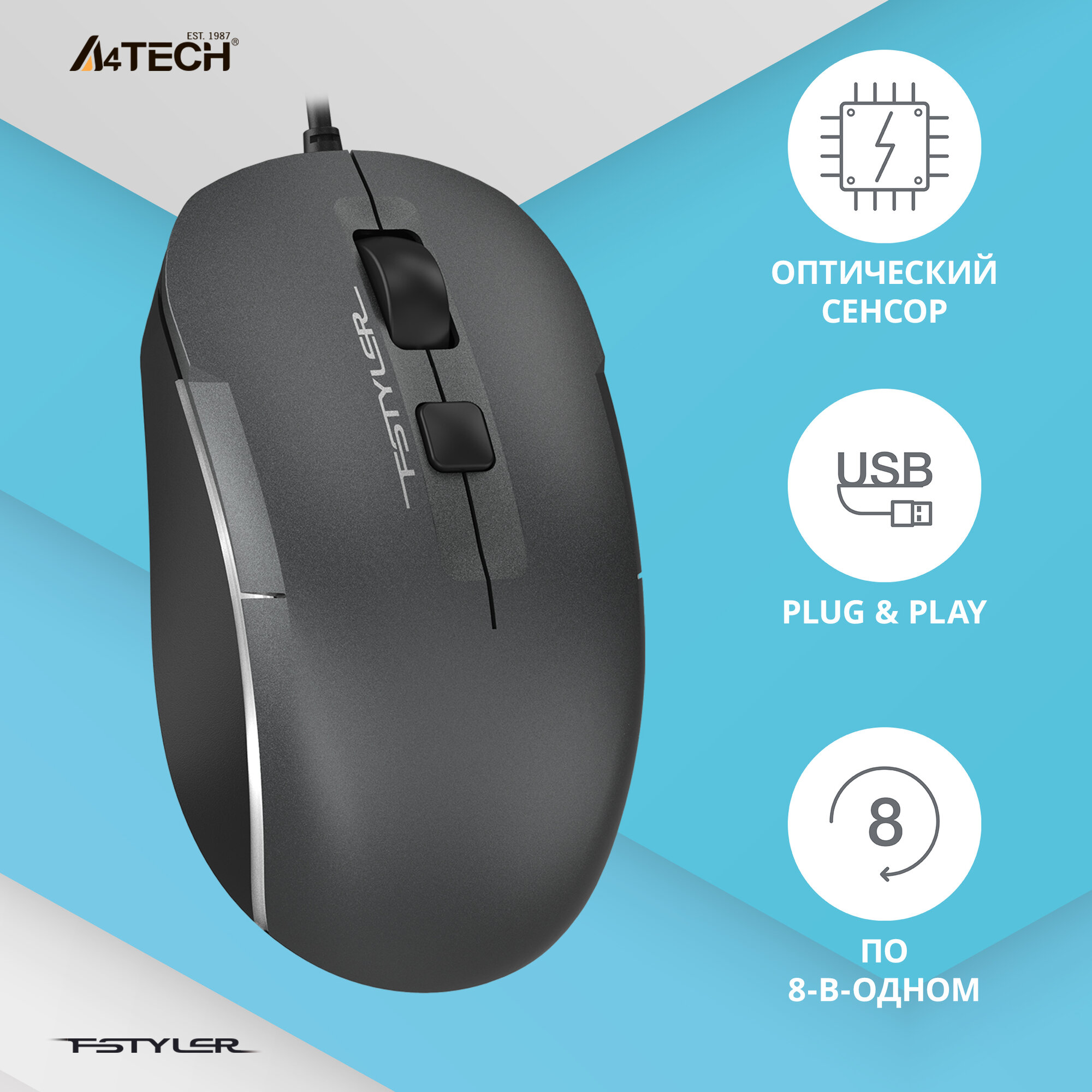 Купить Мышь A4Tech Fstyler FM26, серый/черный (fm26 usb (smoky grey))