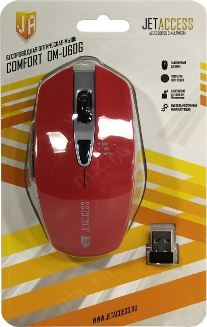 Беспроводная мышь Jet.a Comfort Om-u60g красная (800/1200/1600dpi, 5 кнопок)