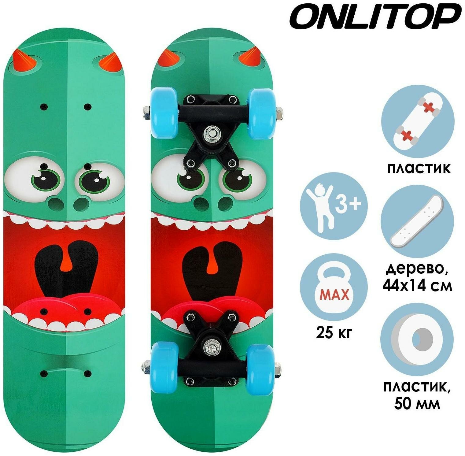 Купить Скейтборд детский «Монстрик» 44х14 см, колёса PVC 50 мм