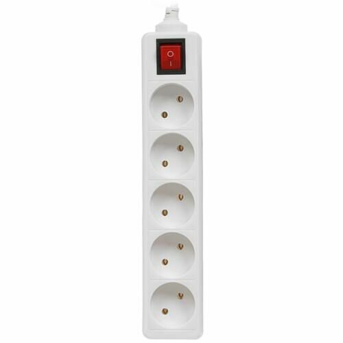 Сетевой фильтр удлинитель фотон 10А 5 метров 5 розеток с выключателем с заземлением белый, ГОСТ