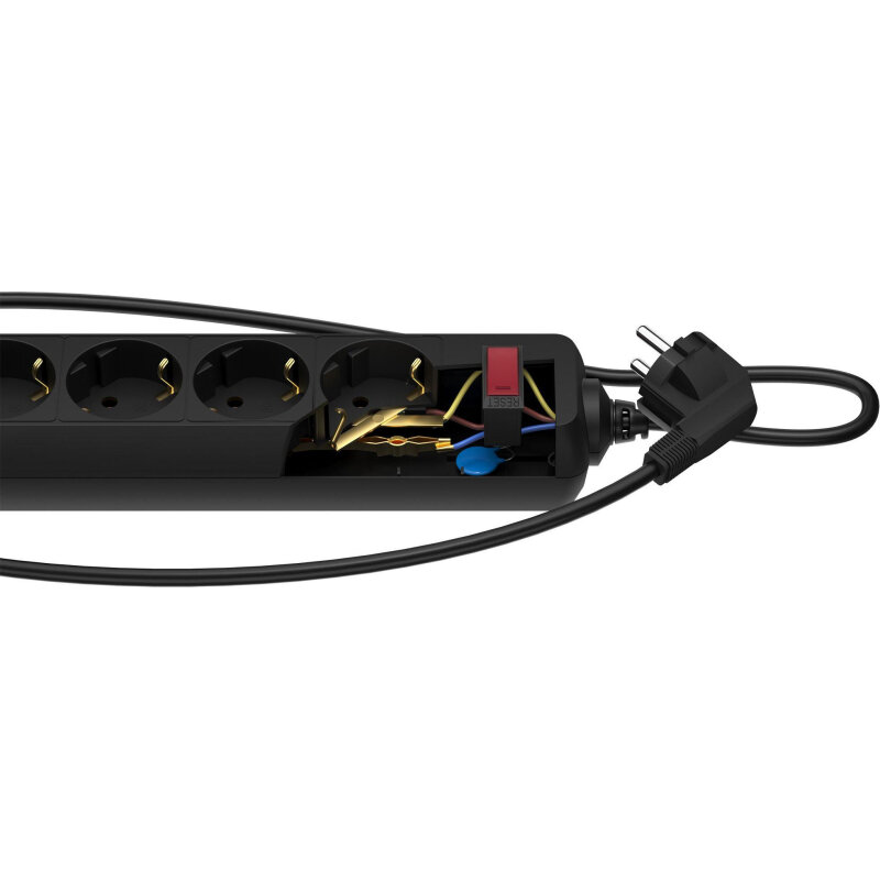 Удлинитель сетевой "фотон" 16-25ЕS Для офиса 2м, 16А, 5 розеток с заземлением, с выключением, черный