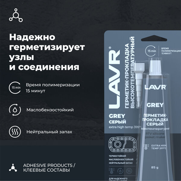 Герметик-прокладка Lavr Grey RTV Silicone Gasket Maker, силиконовый, термостойкий, серый, туба 85г, арт. Ln1739