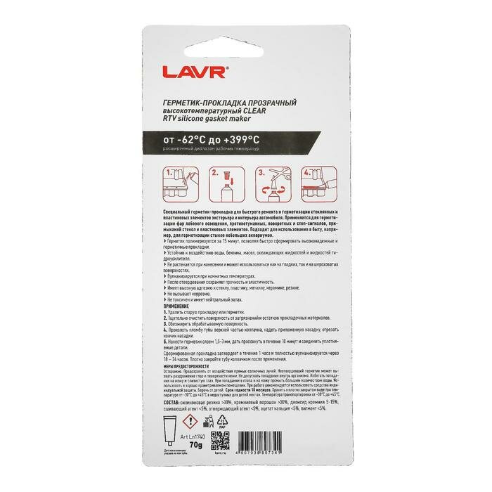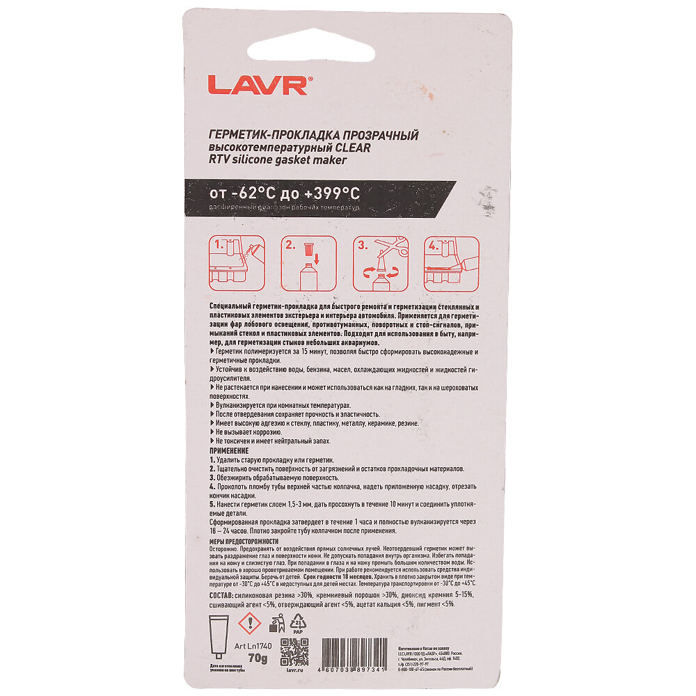 Герметик-Прокладка Прозрачный Высокотемпературный Clear Lavr Rtv 70г Lavr Ln1740 LAVR арт. Ln1740