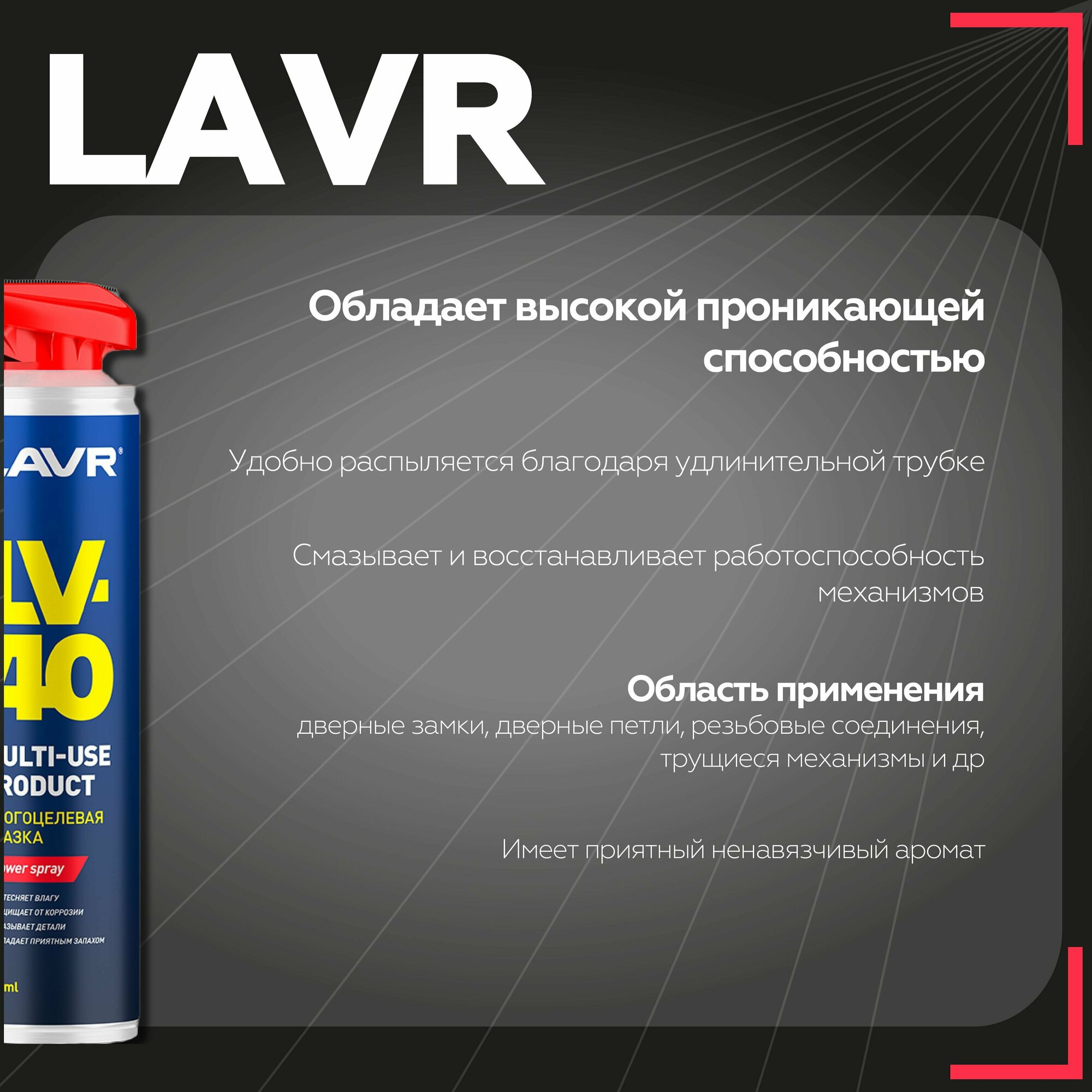 Многоцелевая смазка LV-40 LAVR Multipurpose grease LV-40, 400 мл, аэрозоль Ln1485 LAVR 2499684 .
