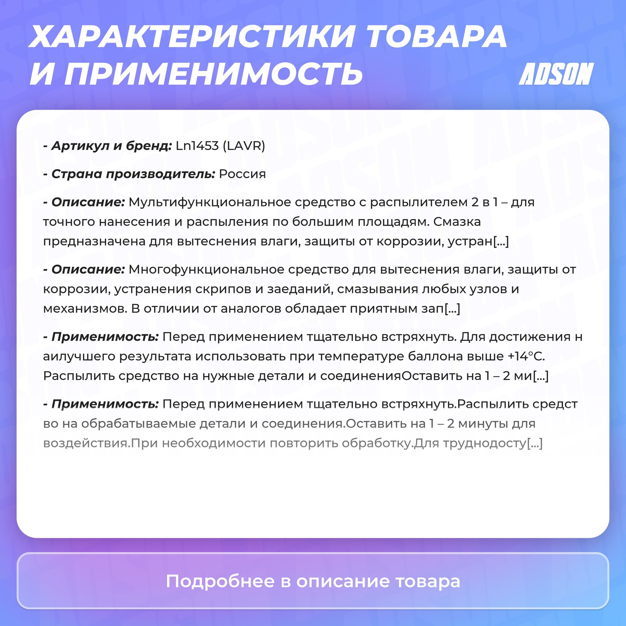 СохранитьСмазка многоцелевая LV-40 520 мл LAVR Ln1453 интересное: