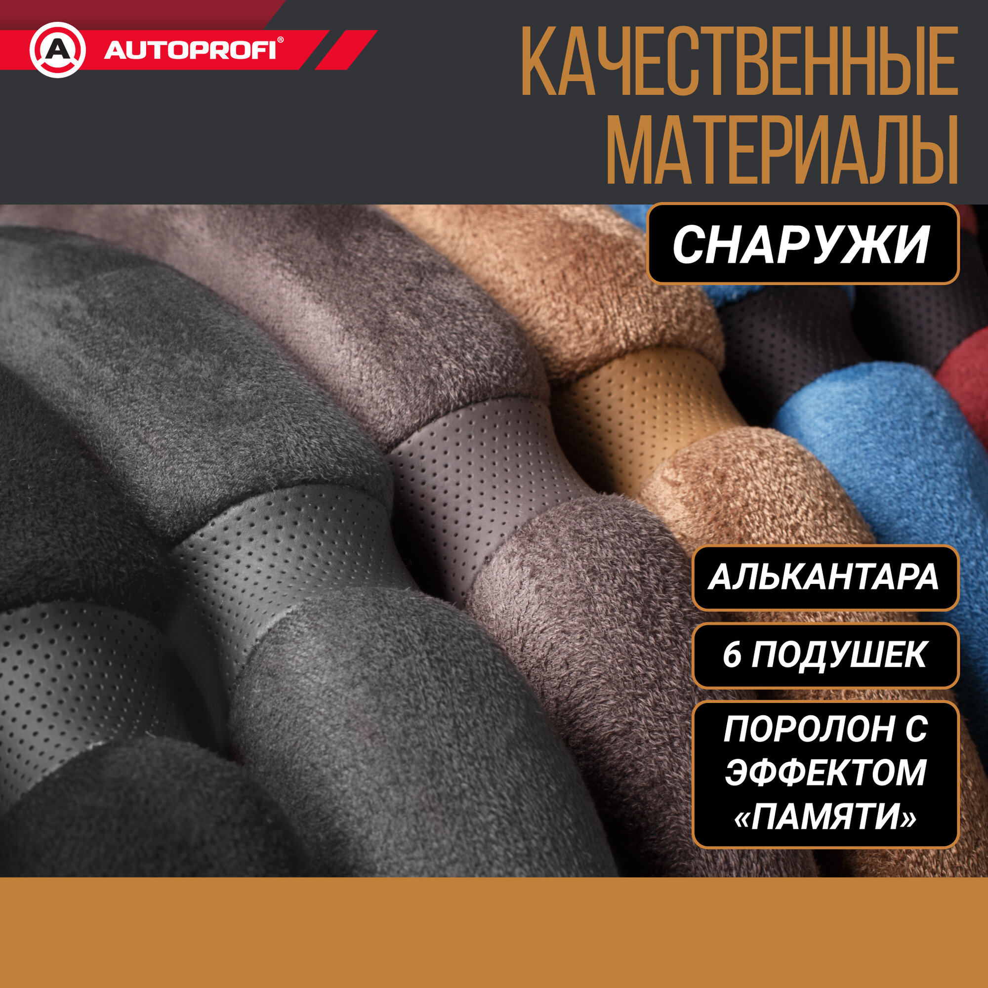 Оплетка AUTOPROFI алькантара, 6 подушек + поролон с памятью (M), чёрный/красный SP-5026 BK/RD (M)