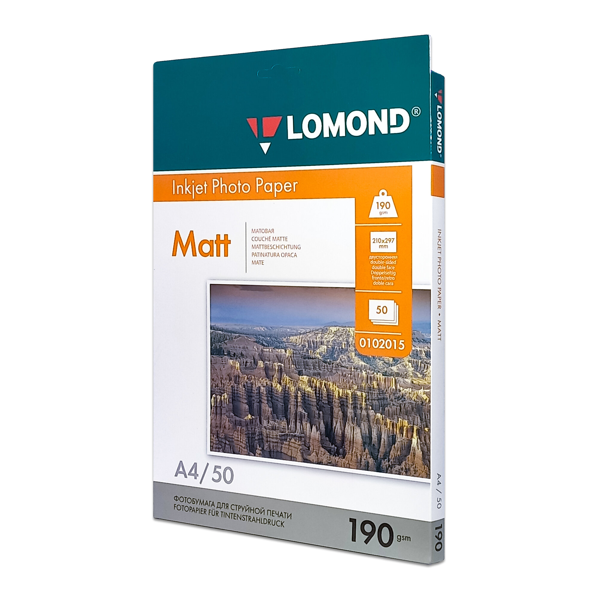 Фотобумага A4 Lomond 190гр, 50л Матовая/Матовая ( 102015 ) .