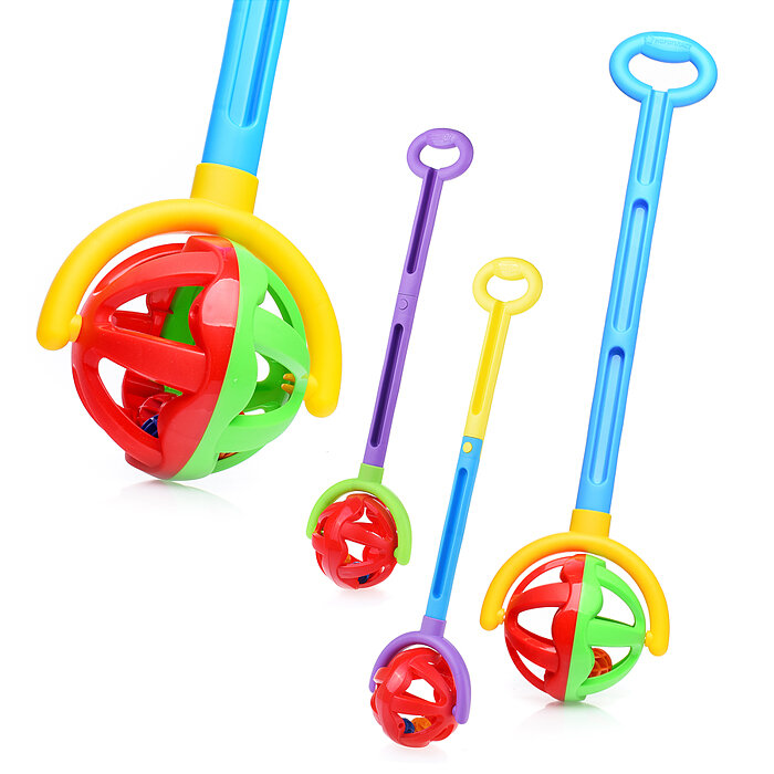 Нордпласт Игрушка-каталка нордпласт Шарик с ручкой (желто-фиолетовая) 59х15х12 см.