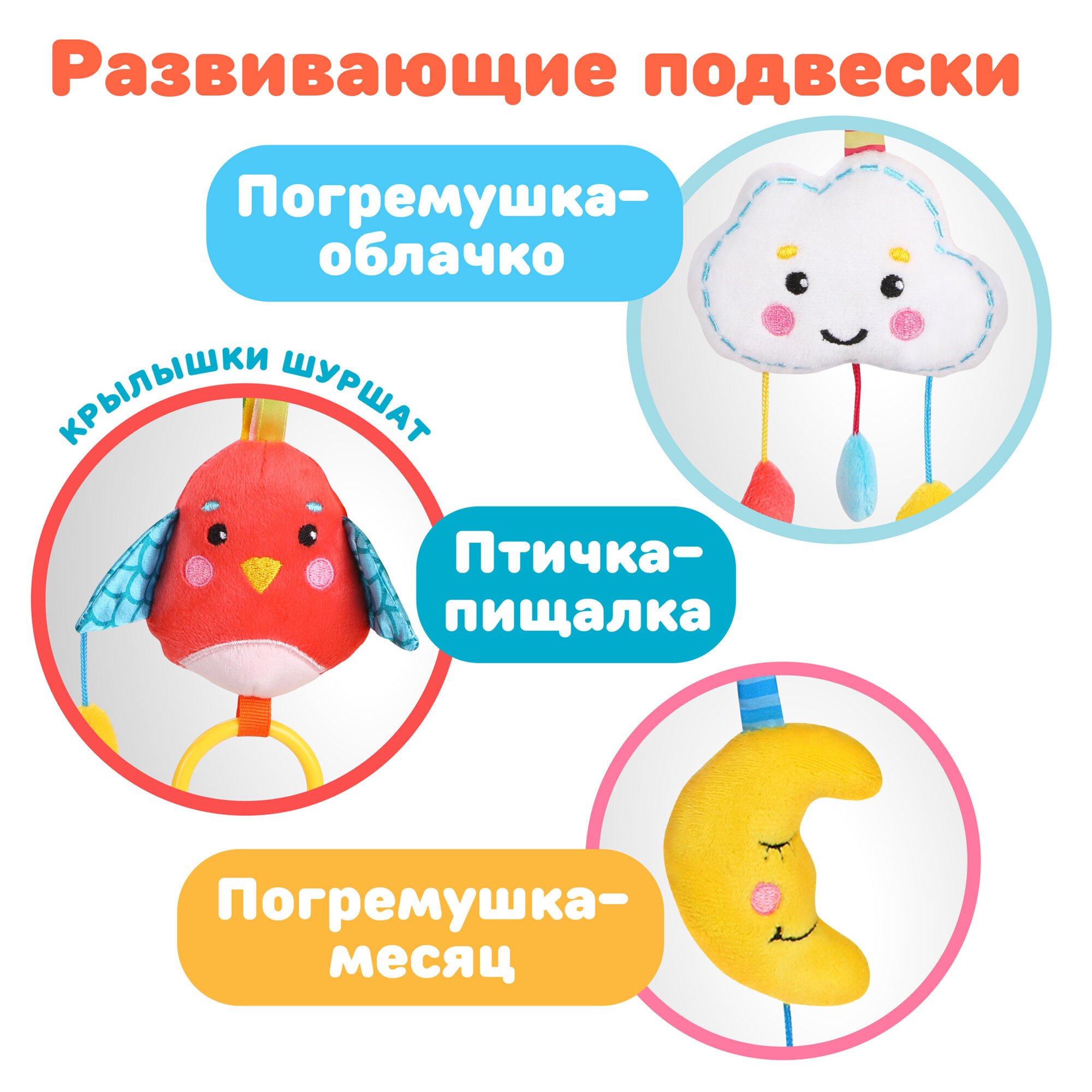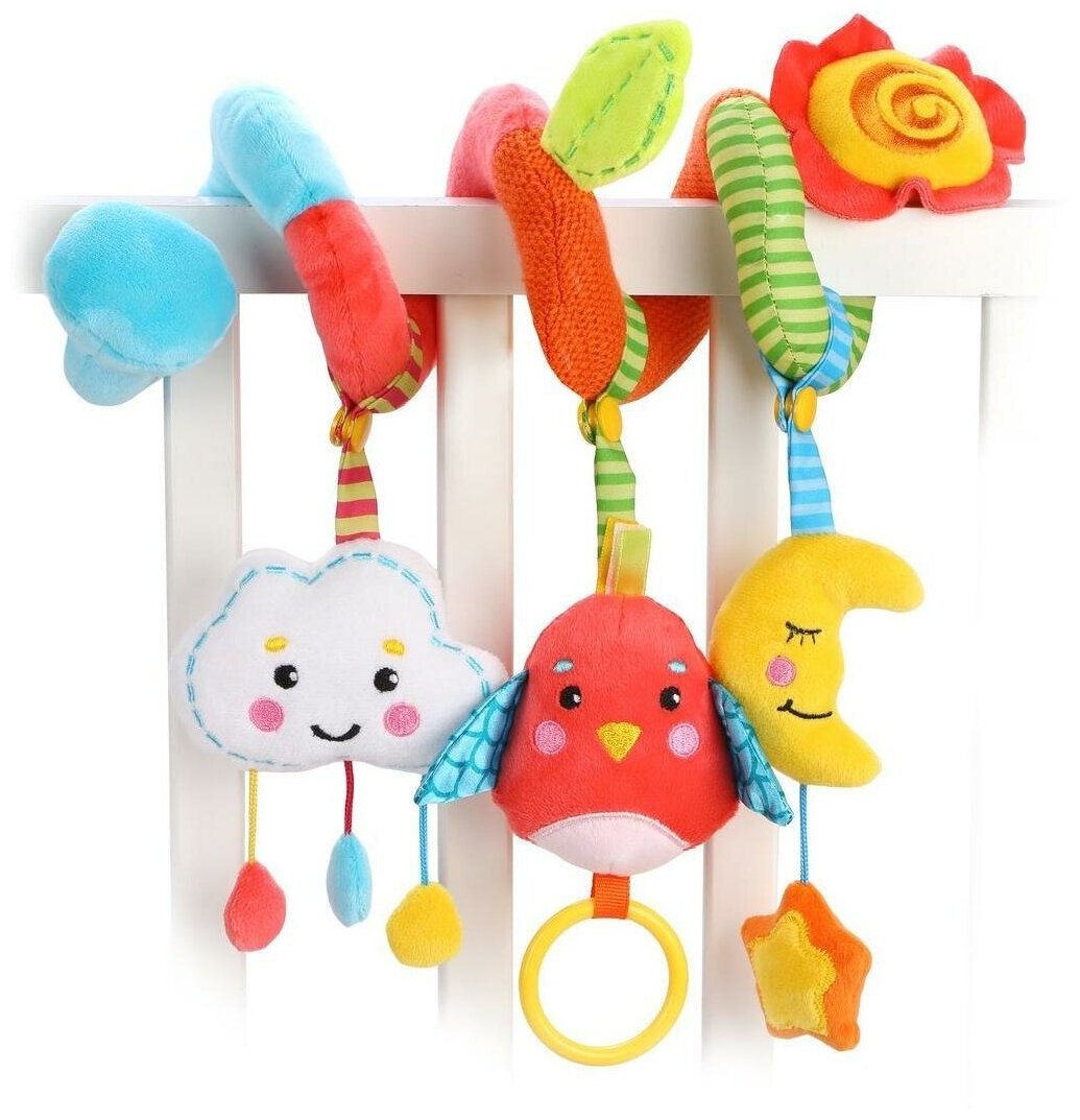 Подвеска растяжка Жирафики, с игрушками, на кроватку, развивающая интересное: