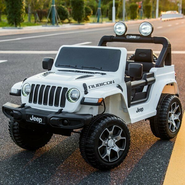 Детский электромобиль джип Jeep Rubicon DK-JWR555 Белый, двухместный, полноприводный