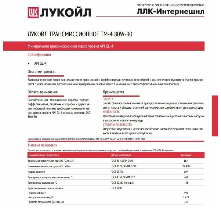 ЛУКОЙЛ ТМ-4 80w-90