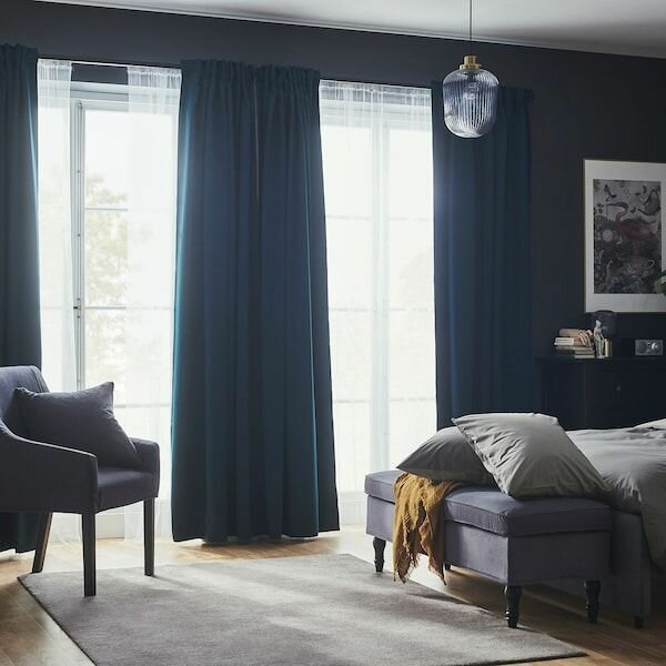 Гардины икеа майгулл на ленте, 145х300 см, 2 шт., темно-синий