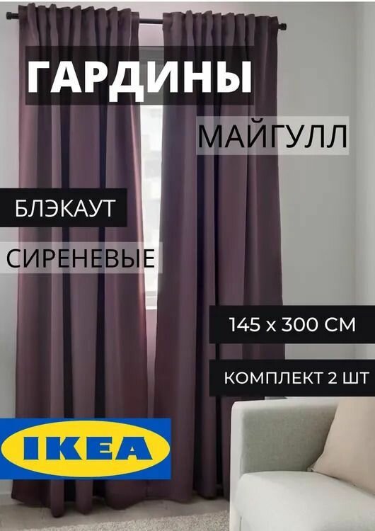 Гардины майгулл икеа шторы на ленте блэкаут 145х300 см, 2 шт., сиреневый