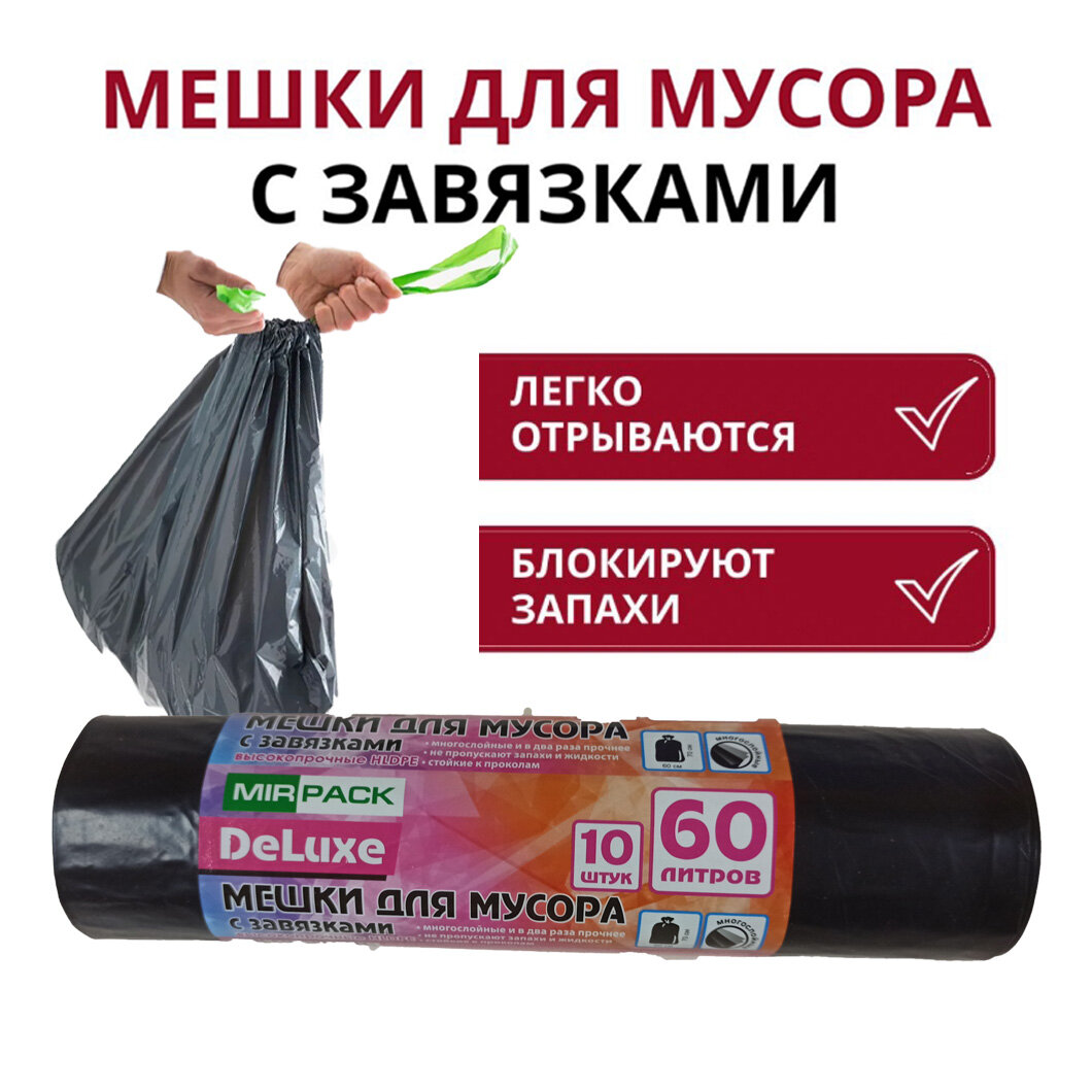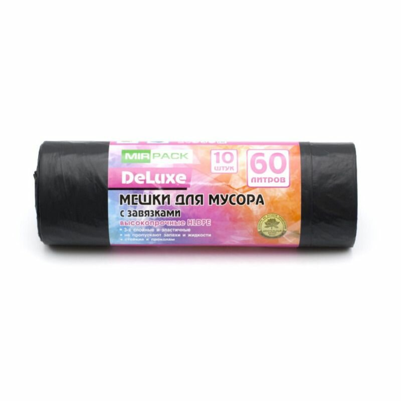 Мешки для мусора MIRPACK Deluxe высокопрочные с завязками 60 л, 10 шт., 1 упак., черный