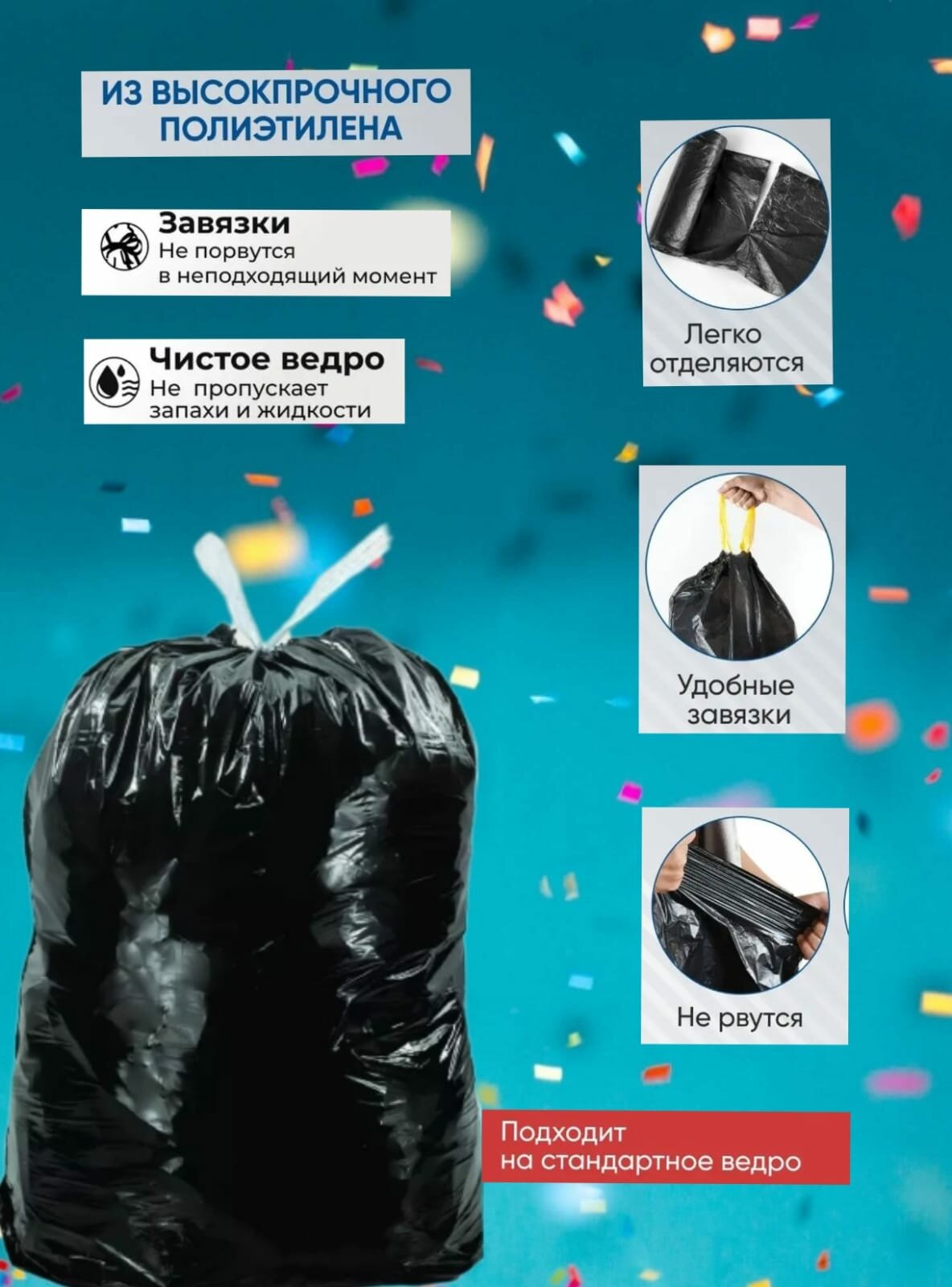 | Отзыв: | Оказались малы для мусорного контейнера на 50 литров. ))) |