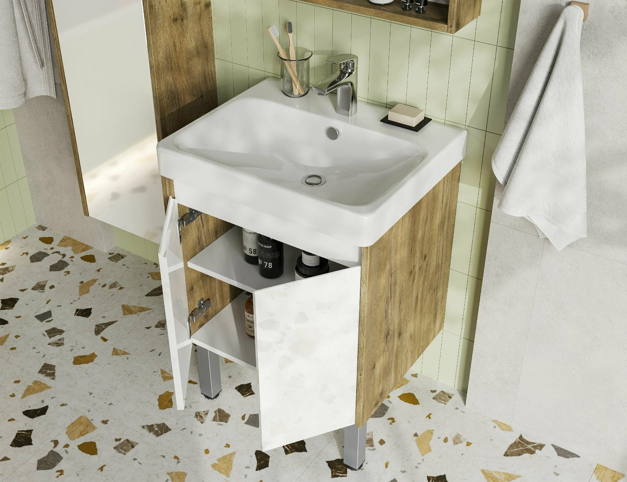Тумба под раковину в ванную 2 створки Aquaton Сканди Doors 45 1A278701SDB20