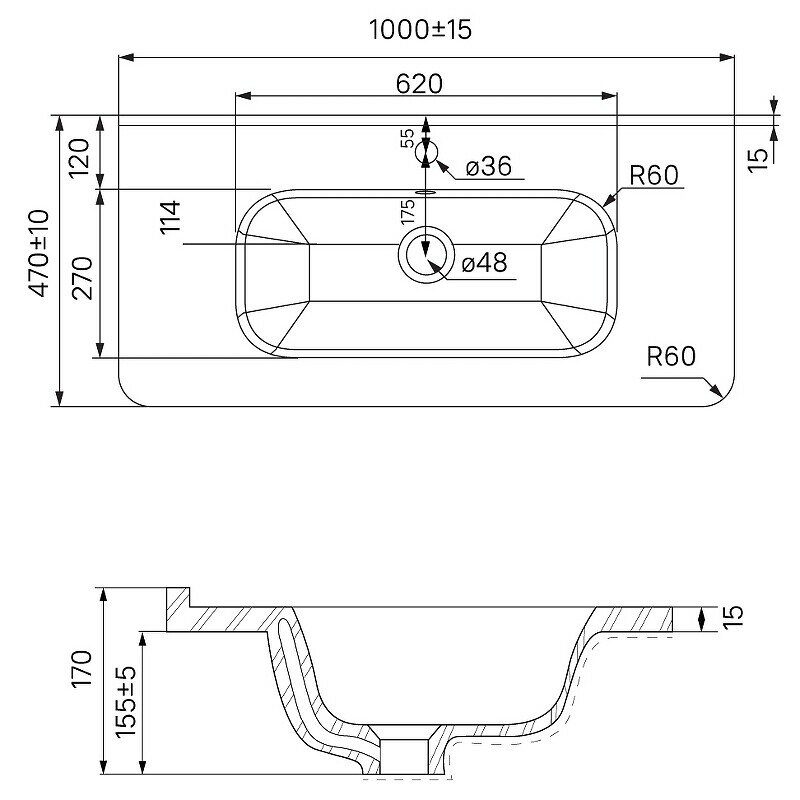 Тумба Iddis Torr 60см белый матовый, подвесная, со столешницей (TOR60WBi95K)