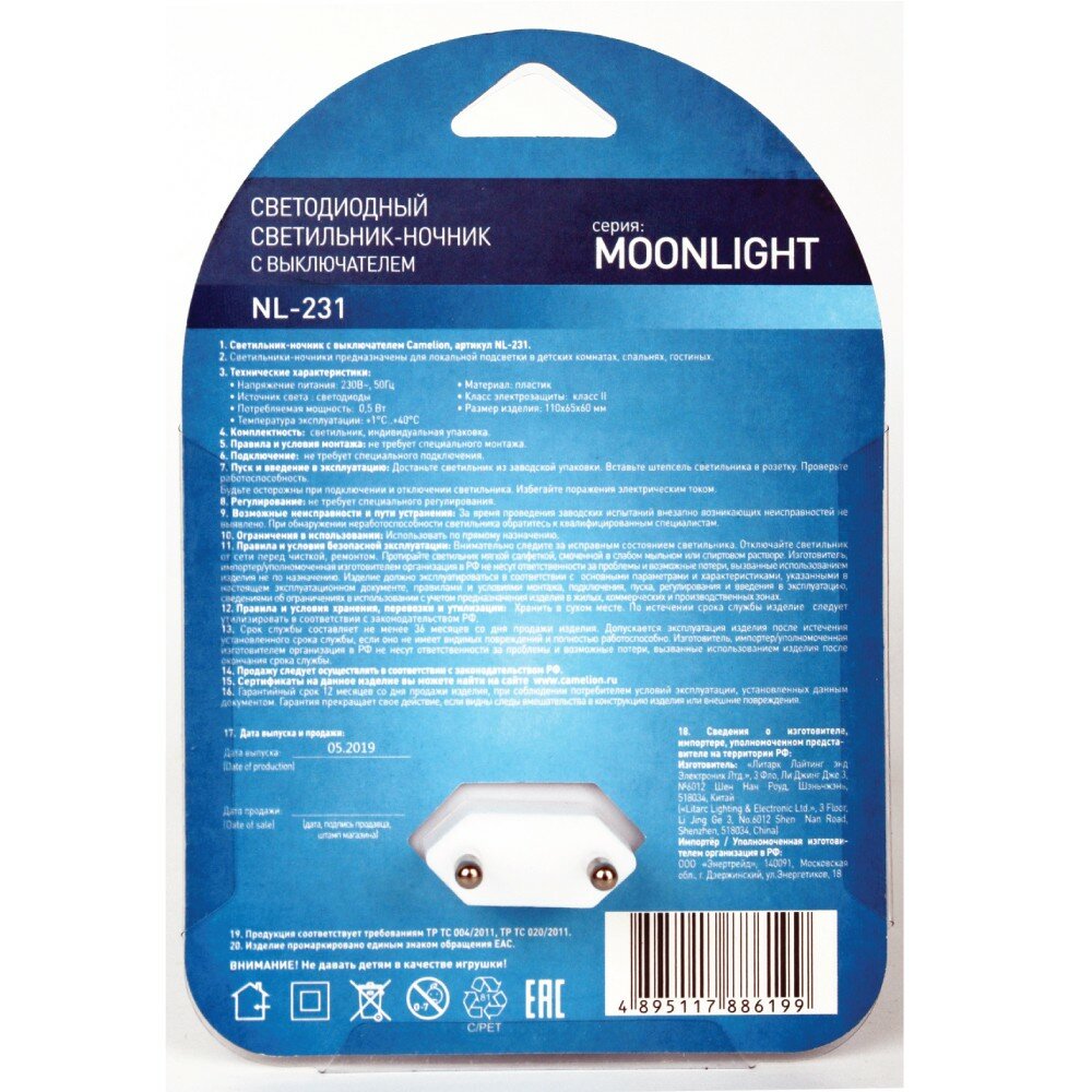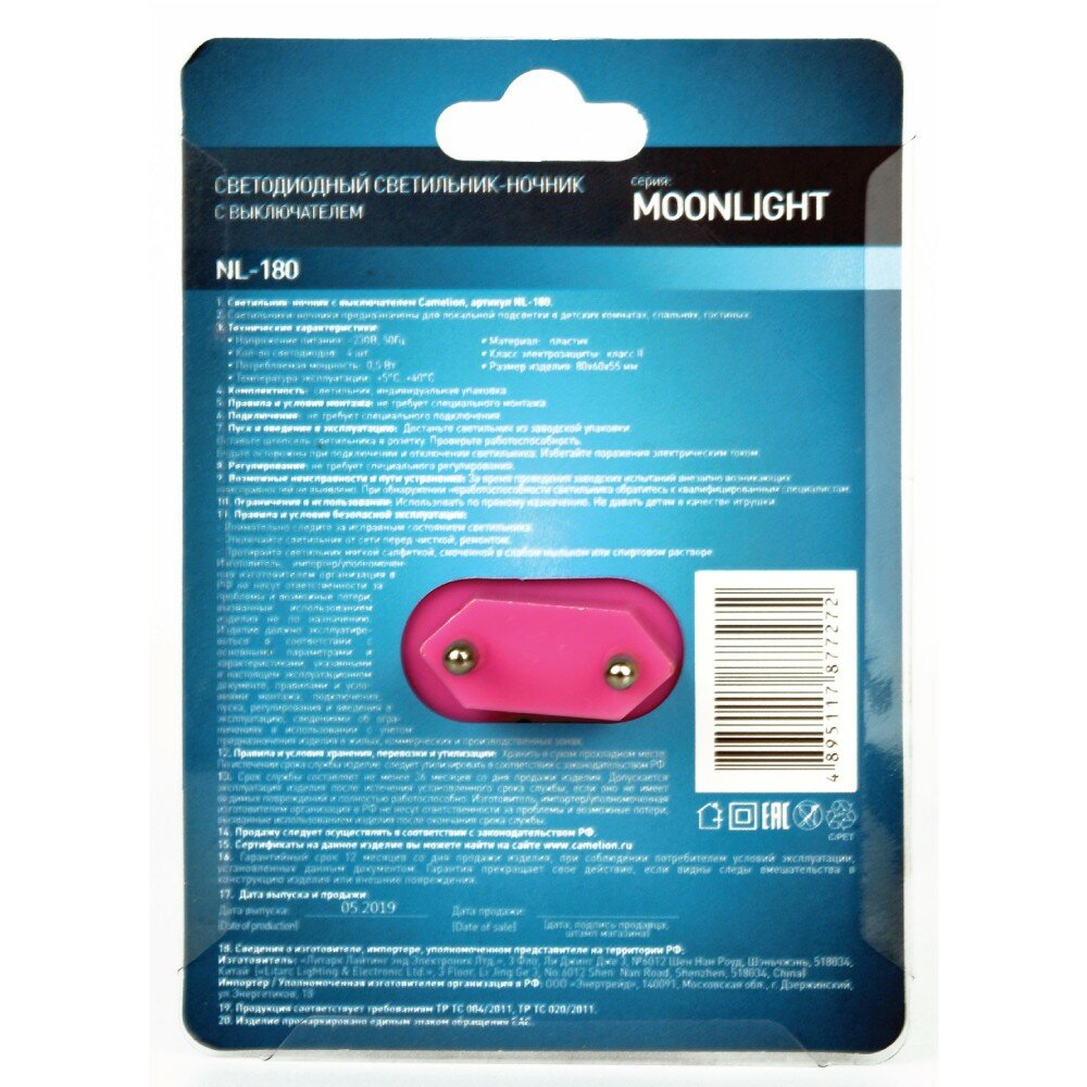 LED ночник с выкл Camelion NL-244 "Месяц"