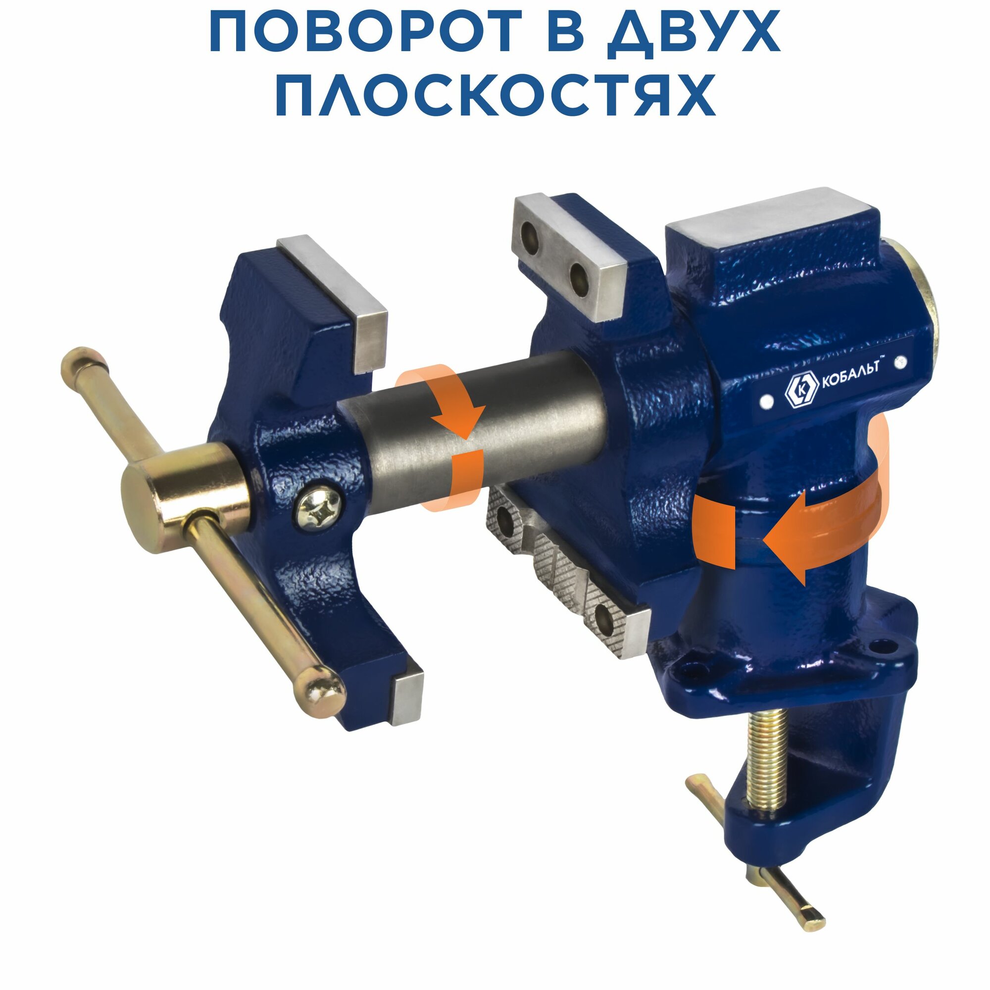 Тиски слесарные поворотные кобальт настольные, ширина губок 63 мм, захват 58 мм, 4 кг
