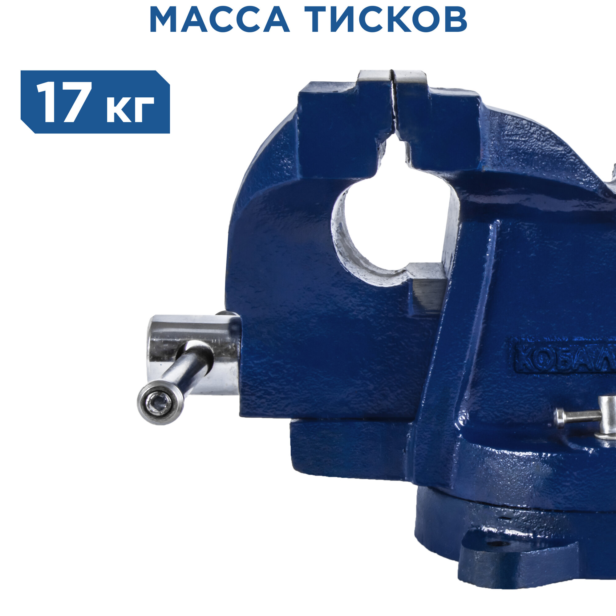 Тиски слесарные кобальт поворотные, ширина губок 150 мм, 17 кг, наковальня, коробка наковальня, коробка