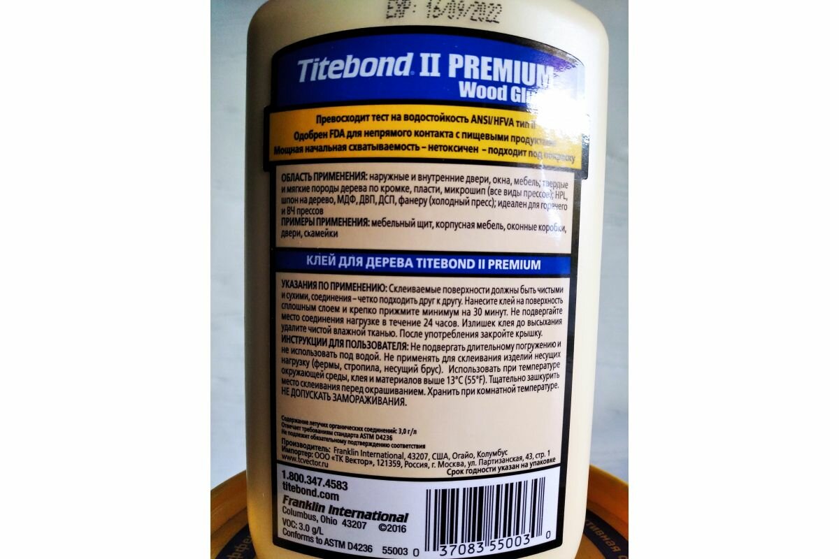 Клей для дерева Titebond II Premium столярный влагостойкий ПВА 473 мл
