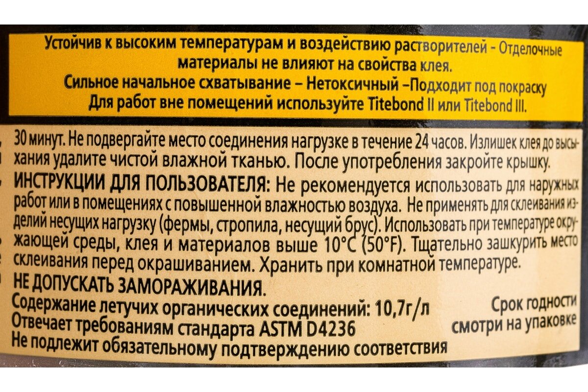 TITEBOND Original Wood Glue Клей ПВА для дерева, желтый (237 мл)